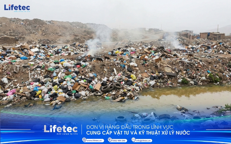Tác động đến môi trường nước: Đây là hậu quả nguy hiểm nhất. Nước mưa chảy qua các bãi rác sẽ tạo thành nước rỉ rác (nước rác) chứa nồng độ chất ô nhiễm cực cao. Loại nước này thấm xuống đất làm ô nhiễm nguồn nước ngầm hoặc chảy tràn ra sông hồ, gây chết cá tôm và hủy hoại hệ sinh thái thủy sinh.
