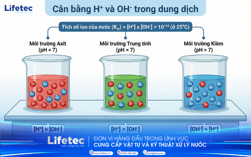 Dựa vào tích số ion của nước, chúng ta có thể dễ dàng xác định một dung dịch là axit, bazơ hay trung tính dựa vào nồng độ các ion: