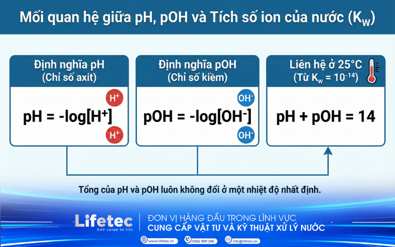 Mối liên hệ giữa pH và pOH luôn được duy trì ở mức: pH + pOH = 14 (ở 25 độ C)
