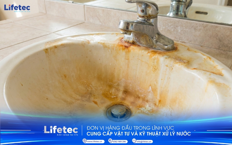 Hình ảnh chậu nước hoặc bồn rửa mặt bị ố vàng cam đặc trưng